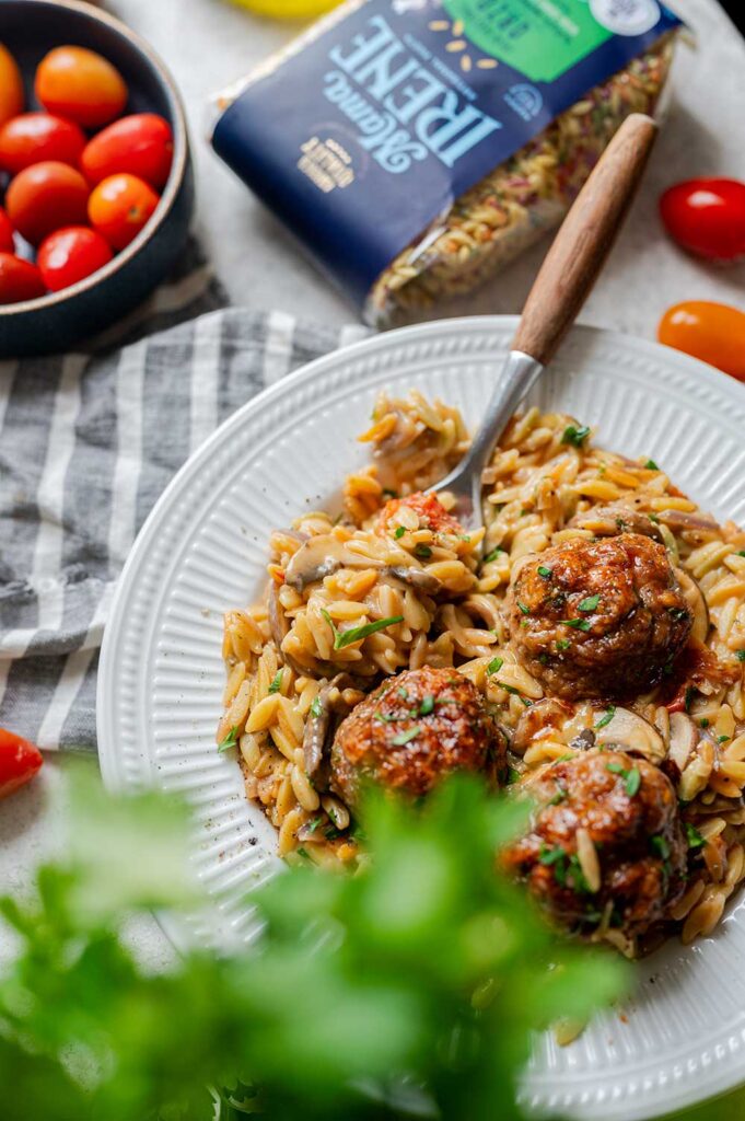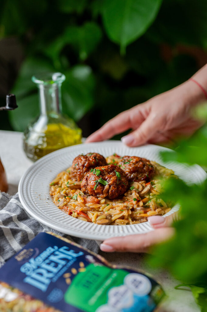 If you are looking for an easy and impressive orzo recipe that the whole family will love, this creamy vegetable orzo with mushrooms, cherry tomatoes and juicy mini meatballs is the perfect choice. A dish that combines the warmth of comfort food with the freshness of vegetables and the homemade deliciousness of a complete everyday meal.